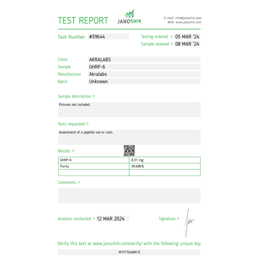 - Stichworte: AKRALABS GHRP-6 (10 MG VIAL)