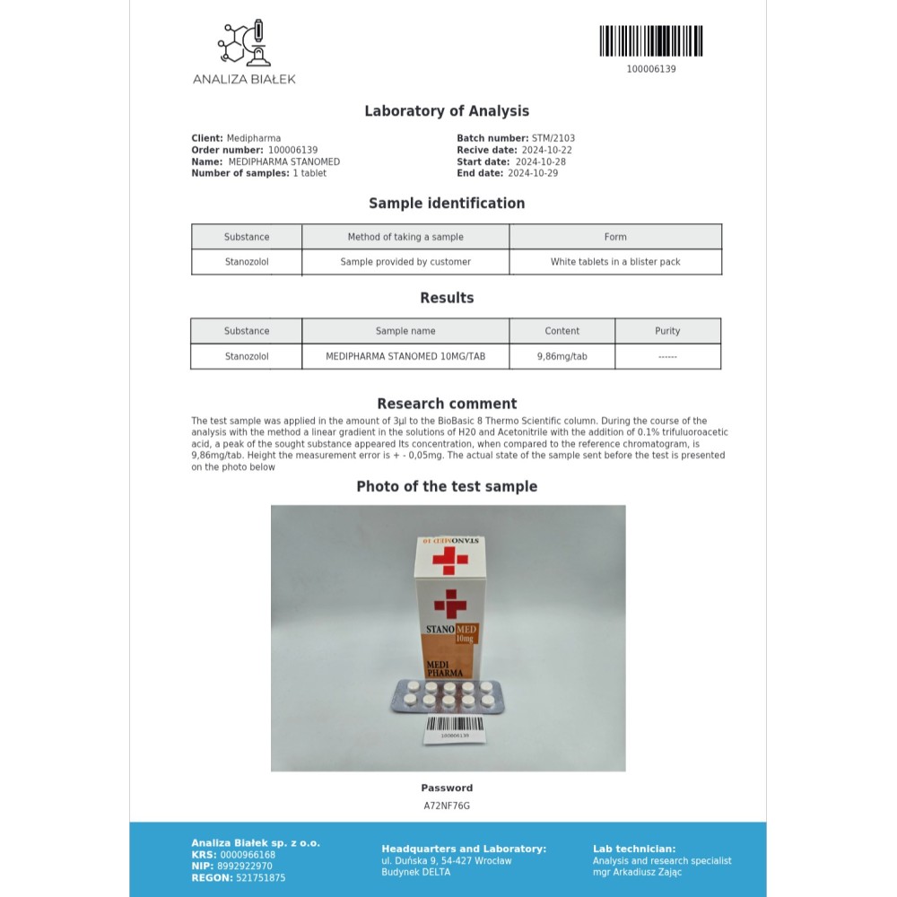 Content: 100 tablets a 10mg Stanazolol